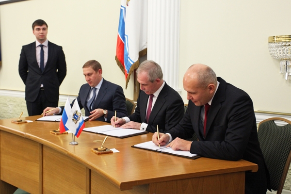 Signing of an agreement on the project to create the company Schaeffler automotive and industrial components. The photo Ulyanovsk Region Governor Sergei Morozov, CEO of the Ulyanovsk region, Dmitry Ryabov and General Director of “Schaeffler Manufekchering Rus” Mikhail Volkov